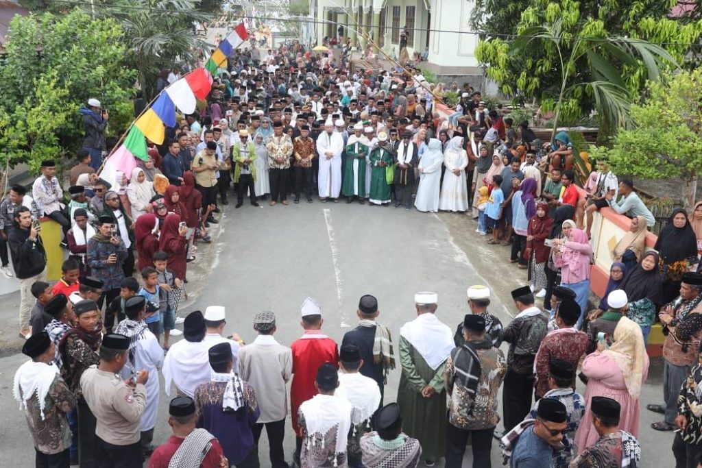 Rombongan Bupati Halmahera Tengah, Dr. Ir. Ikram Malan Sangadji, M.Si., memulai perjalanan dari Desa Kipai menuju Wailegi melewati jalur adat Soya-soya. Sepanjang jalan, lantunan shalawat dan tabuhan rebana mengiringi langkah rombongan hingga tiba di benteng adat Wailegi, di mana mereka disambut dengan tarian Cakalele.